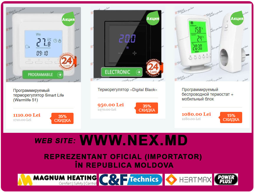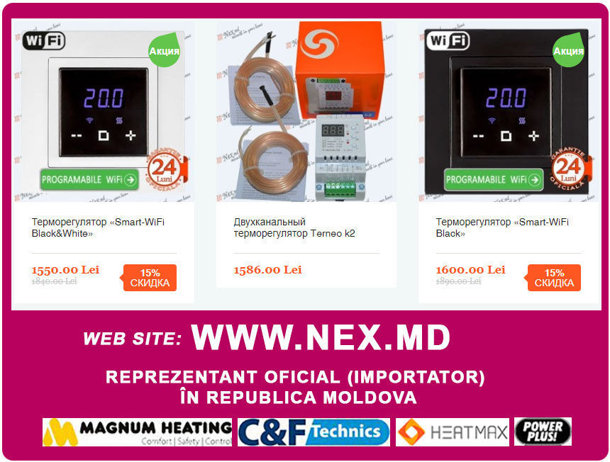 - Терморегулятор SMART WiFi в белом или черном корпусе, сенсорными кнопками, недельным программированием и с управлением по WI-FI через смартфон, можно купить со Скидкой всего за 1500 лей. Официальная гарантия 2 года.