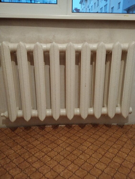 Trei radiatoare din fontă a cîte nouă secții, un radiator cu șase secții, stare foarte bună