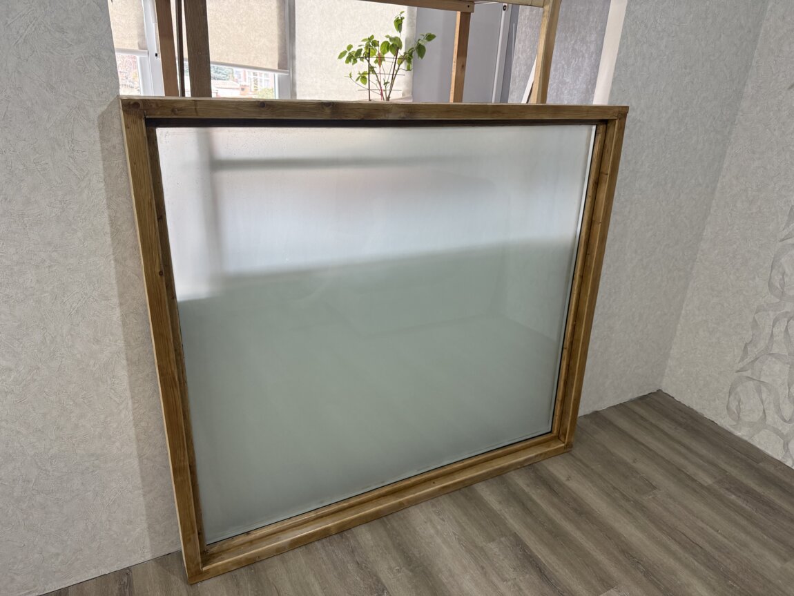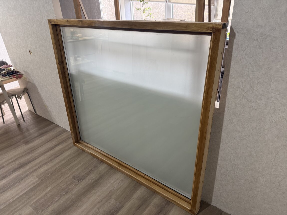 Продам деревянное окно. Наружный размер рамы: ширина 163 см. Высота 145 см. Стеклопакет матовый. Механизм открытия только на проветривание. Дерево покрыто лаком, изделие новое не использовалось т. к. не подошло по размеру. Цена договорная. 77725477