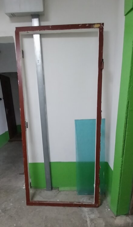 Дверь б/у. Металлическая, тяжелая + коробка. Замок нерабочий(требуется пересобрать), внутренняя сторона требует утепления.