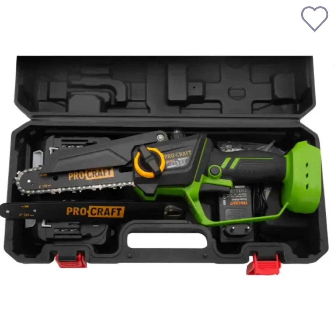 Небольшой вес и эргономичная рукоятка с резиновыми вставками снижают нагрузку на руку, позволяя работать длительно без устали. Пила совместима с аккумуляторами серии Procraft F20, что производит ее частью универсальной системы инструментов.