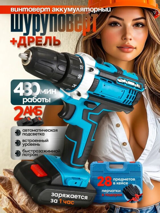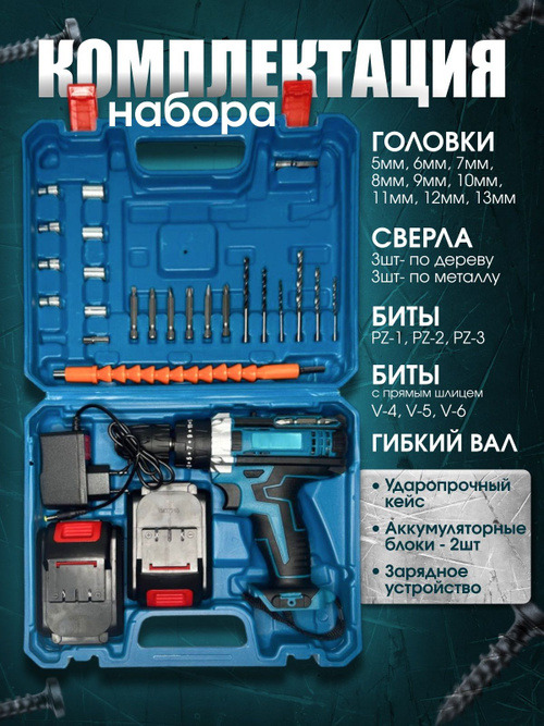 Аккумуляторный шуруповерт с набором инструментов – это мощное и удобное устройство, предназначенное для выполнения различных видов работ по монтажу, демонтажу и ремонту. Обеспечивает высокий крутящий момент и эффективную работу благодаря 24-вольтному аккумулятору емкостью 5.0 ампер-часов, что позволяет использовать инструмент длительное время без подзарядки.