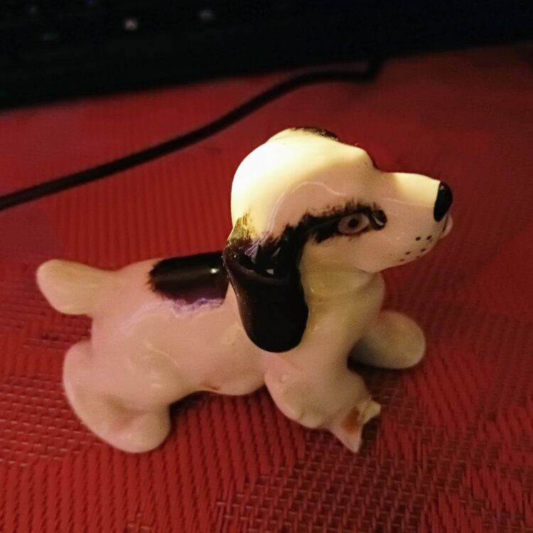 Фарфоровая статуэтка собачки 7,5 на 6 см(небольшой дефект правой лапки)