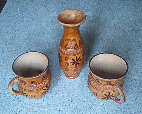Деревянный сувенирный набор "Карпаты" (вазочка и 2 кружки) - 50руб