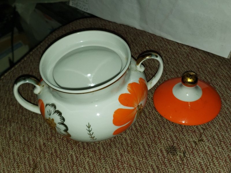 Сахарница в идеальном внешнем состоянии, без сколов и трещин.