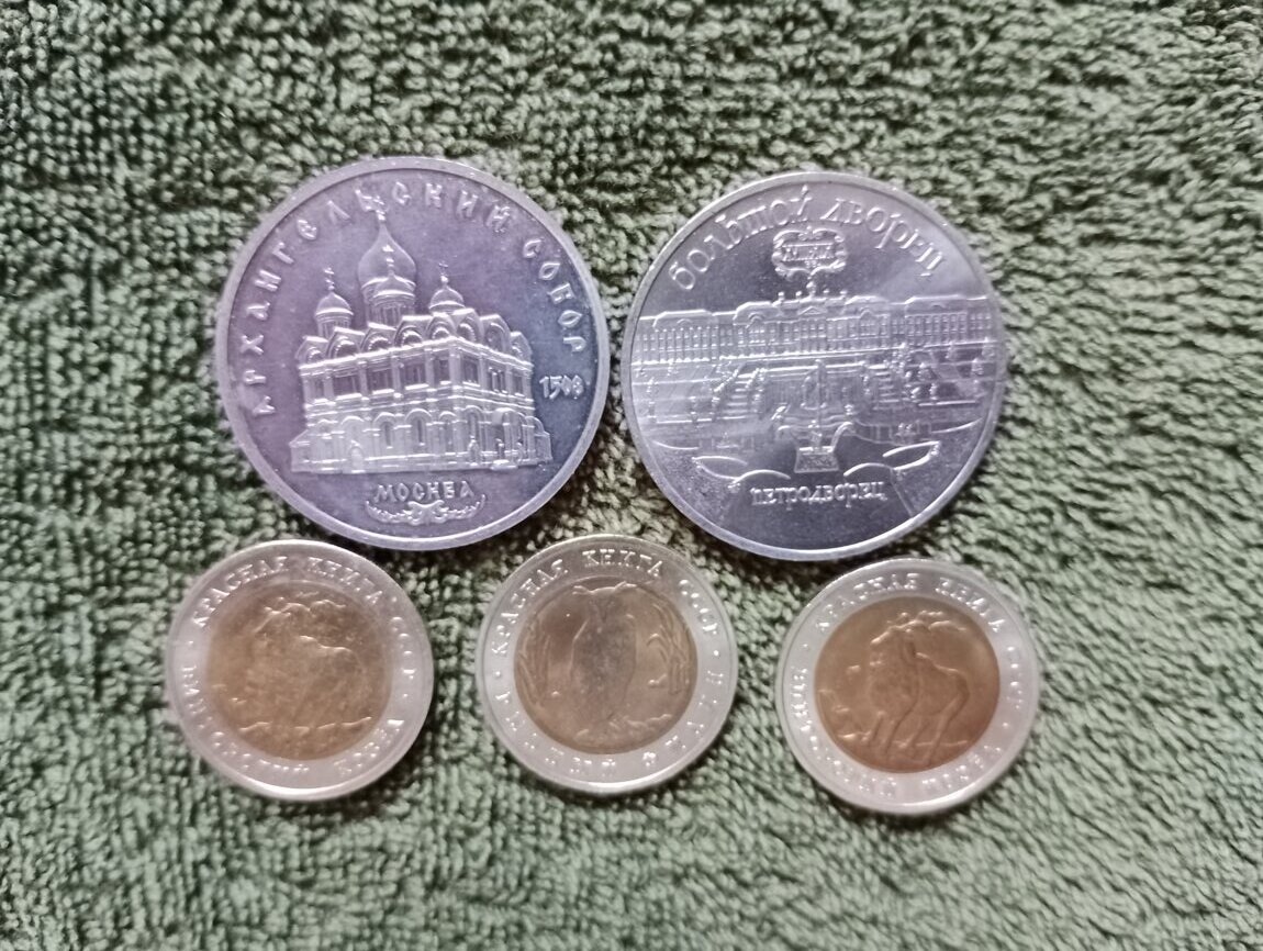 Монеты номиналом 5 рублей, серия " Красная книга СССР" Винторогий козел, Рыбий филин.