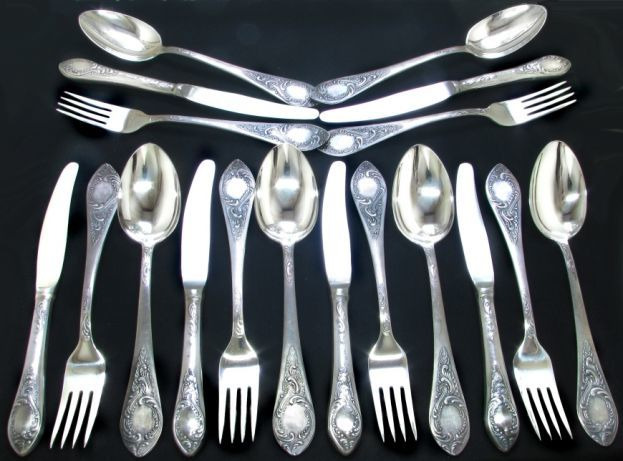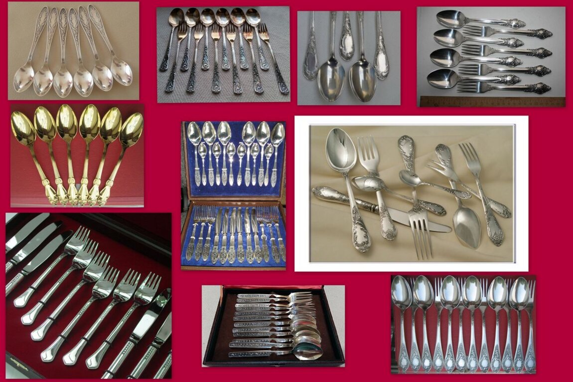 Столовые приборы, бокалы, половники, лопатки, щипцы и др. предметы для сервировки стола.