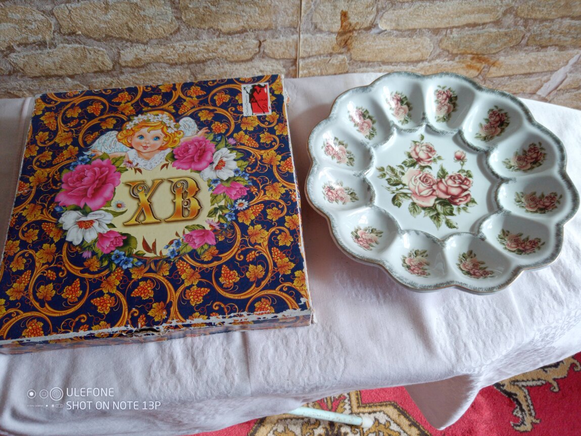 Блюдо фарфоровое на 12 яйц и пасхи 1шт. диаметр 25 см.= 170 рублей.