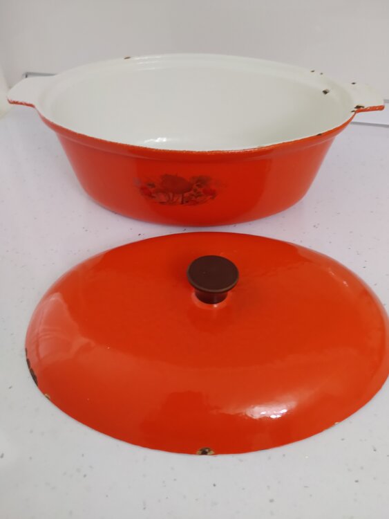 Продам чугунный толстостенный эмалированный казан-утятница СССР на 4,5 литра.