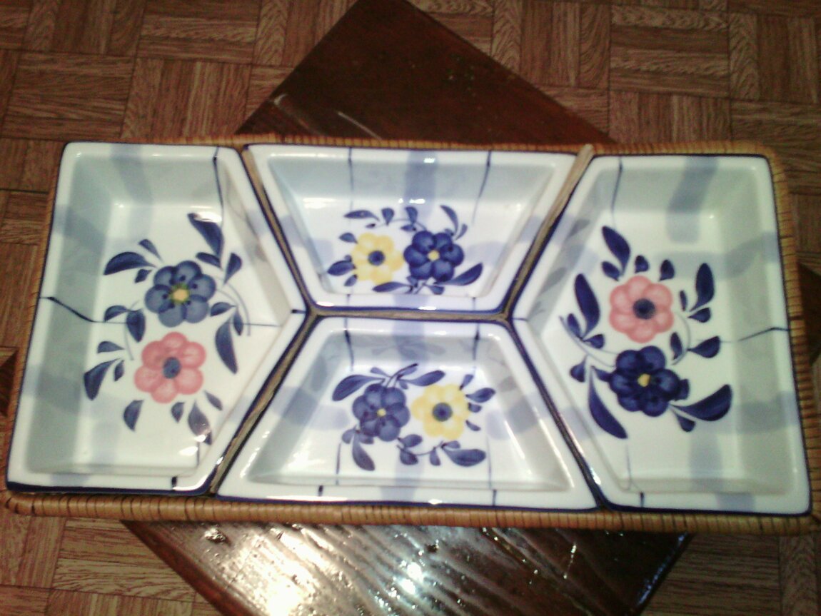 Менажница Rosenberg из четырех секций на плетеном подносе