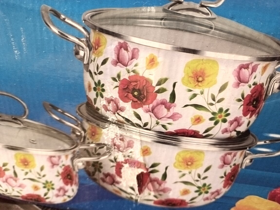 Продам новые в упаковке кастрюли с крышками, подходят для всех видов плит. Можно по отдельности 350р, в упаковке 3 штуки за 1000р отдам. Размеры на фото коробки.