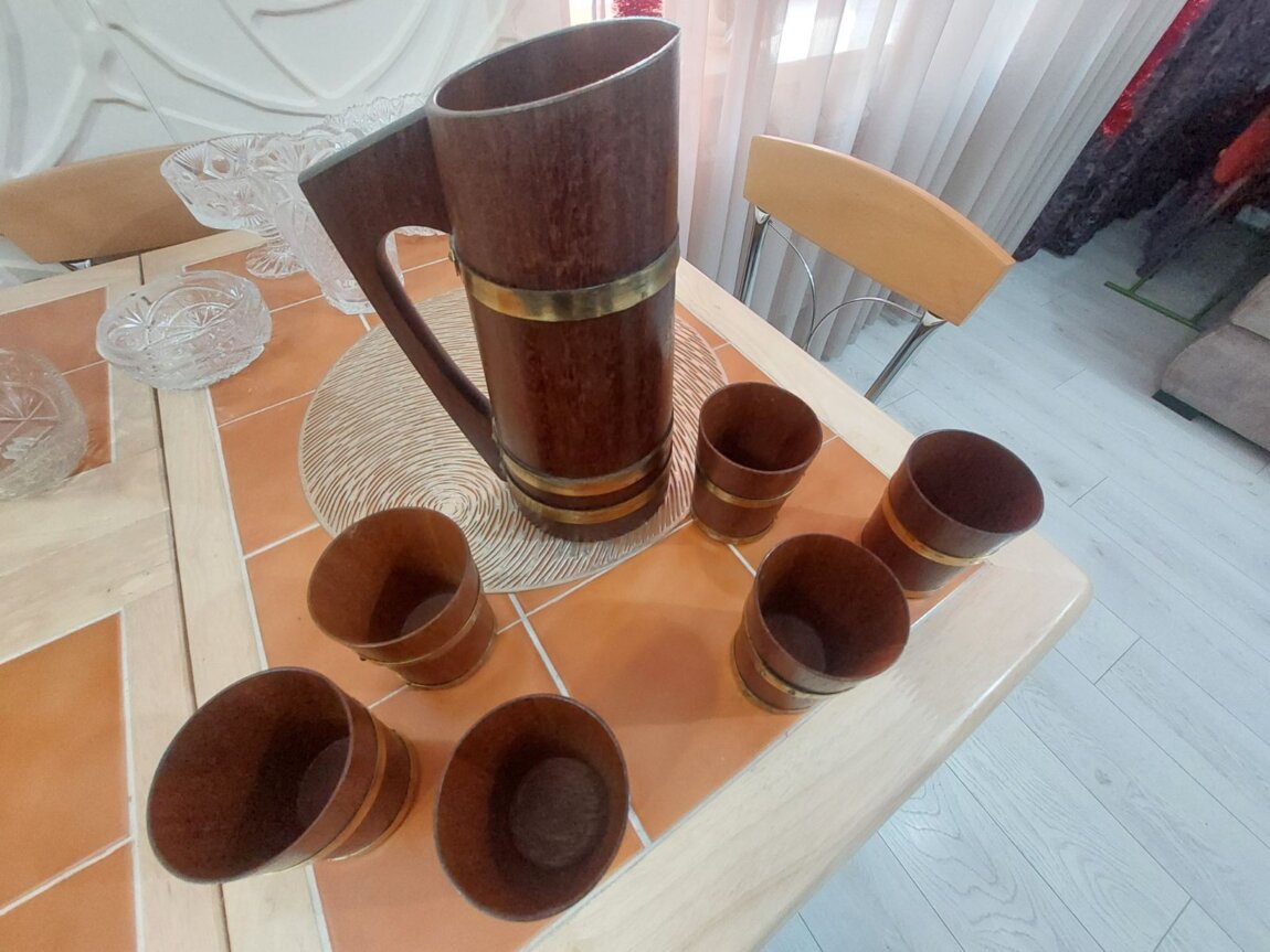 Набор - кувшин и 6 бокалов, дерево, Германия - 70 $.