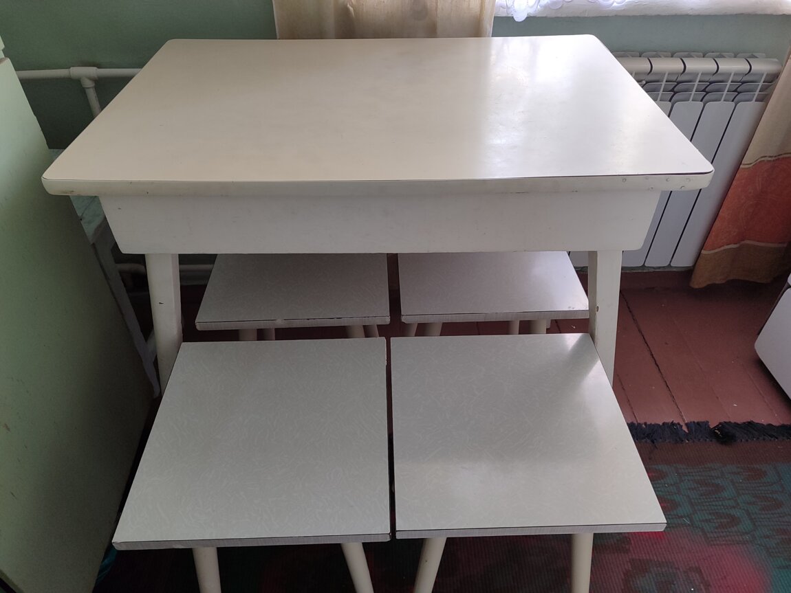 Трюмо 50-ых годов. Цена - 350 руб. Стулья б/у под перетяжку (2 желтых и 1 цветной). Цена - 150 руб. за 1 шт. Кухонный стол б/у с большим выдвижным ящиком. Длина- 83 см., ширина- 55 см., высота- 76 см. Цена - 200 руб. Все советского производства. (Табуретки - проданы). Диван б/у, советского производства. Раскладывается. Цена - 320 руб. Кухонный шкаф б/у салатового цвета (для дачи или гаража). Высота с ножками - 165 см. Длина - 98 см. Ширина - 44 см. Цена - 230 руб. Кухонная тумба б/у белого цвета с выдвижным ящиком. Высота - 84 см. Длина - 60 см. Ширина - 60 см. Цена - 120 руб. Звонить по тел. в г. Бендеры (552) 32133 или (777)30451, после 19 часов.