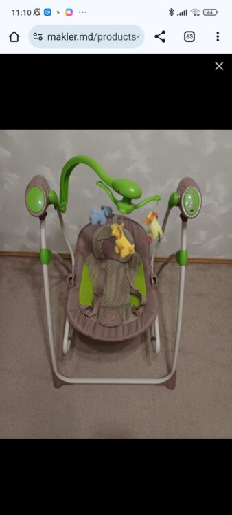 Качели-шезлонг работает от сети, можно использовать как качели, стульчик для кормления. Несколько положений спинки, разные мелодии. 1000р.