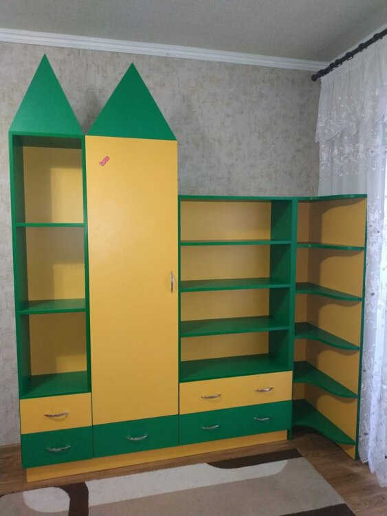 Детская стенка, добротная, выполнена на заказ. Верхние треугольники съемные.