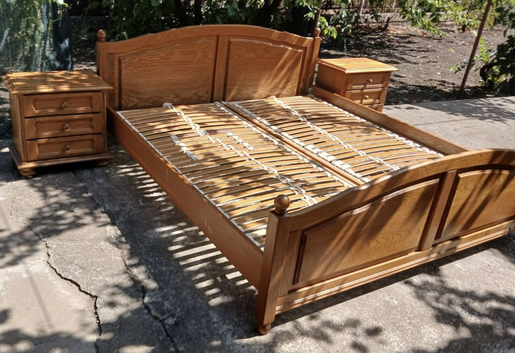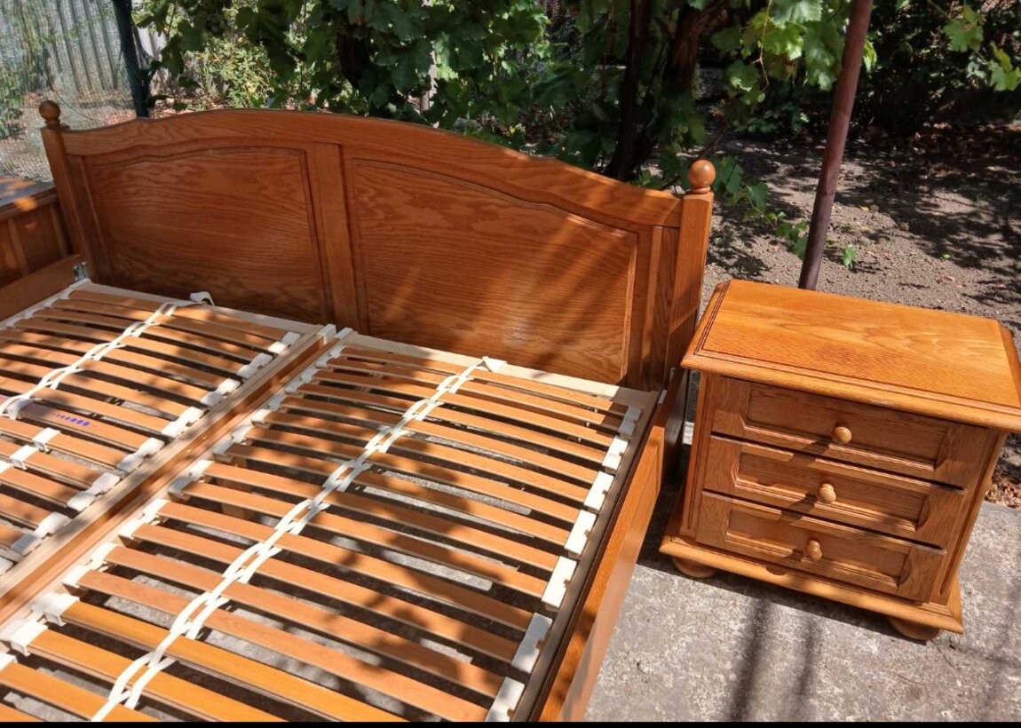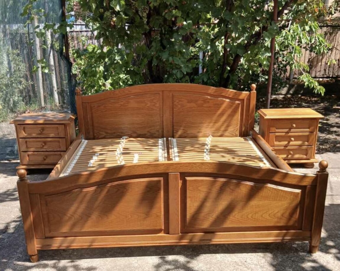 Кровать и 2 прикроватные тумбочки, дуб.