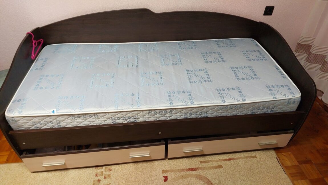 Продаётся кровать с матрасом зима- лето90/200см. и два ящика для белья. состояние идеальное. цена 3.300руб. торг, самовывоз