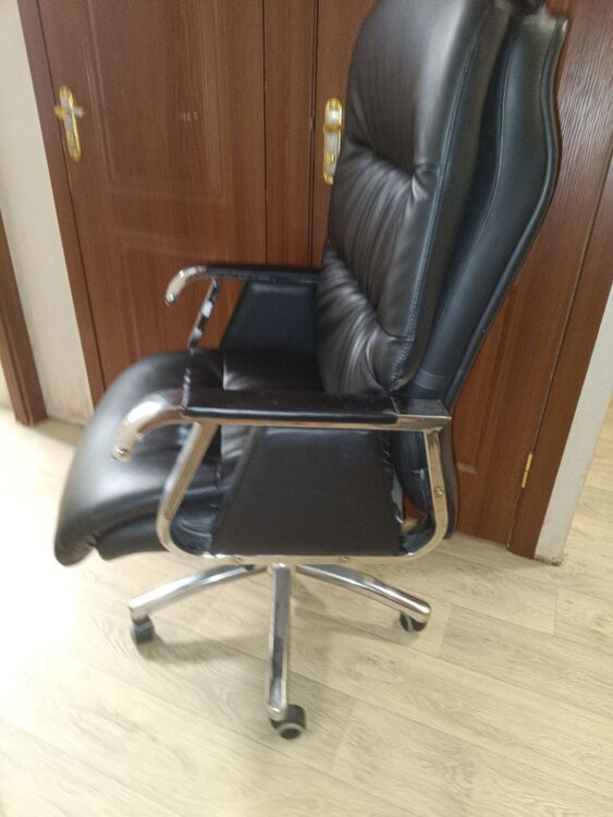 Встроенный регулятор наклона в боковой отсек - бока закрыты кожей - тепло в отличие от тех у кого дырки там + кожаное кресло с большой спинкой, можно качаться, регулировка вверх/вниз назад вперед