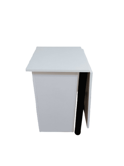 Конструкция стола позволяет использовать его даже в небольших помещениях, поскольку столешница складывается, превращаясь в тумбу. Такая конструкция была разработана, исходя из требований действующих мастеров маникюра. Стол может устанавливаться как на левую, так и на правую сторону.