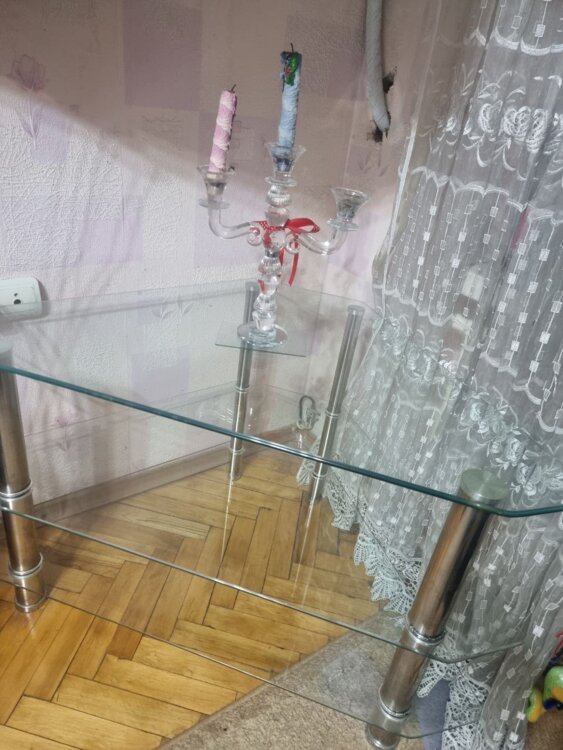 Продам стеклянный столик из прочного толстого стекла на прочных качественных 4 ножках. Доставка, самовывоз