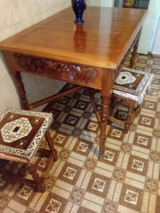 Стол и табуретки ручной работы нат. дерево 0,7×1м