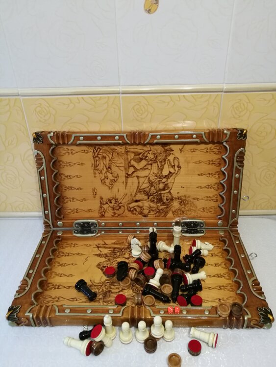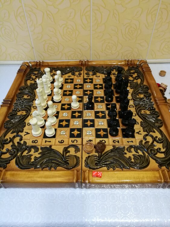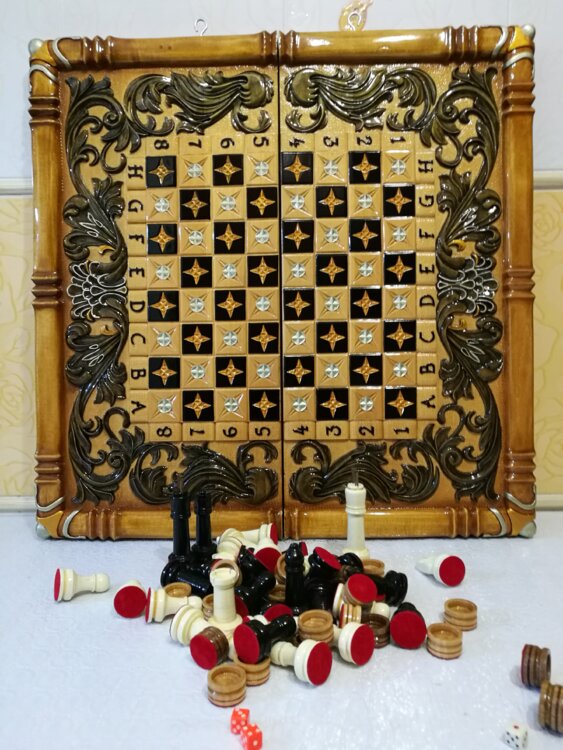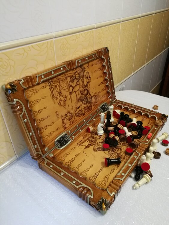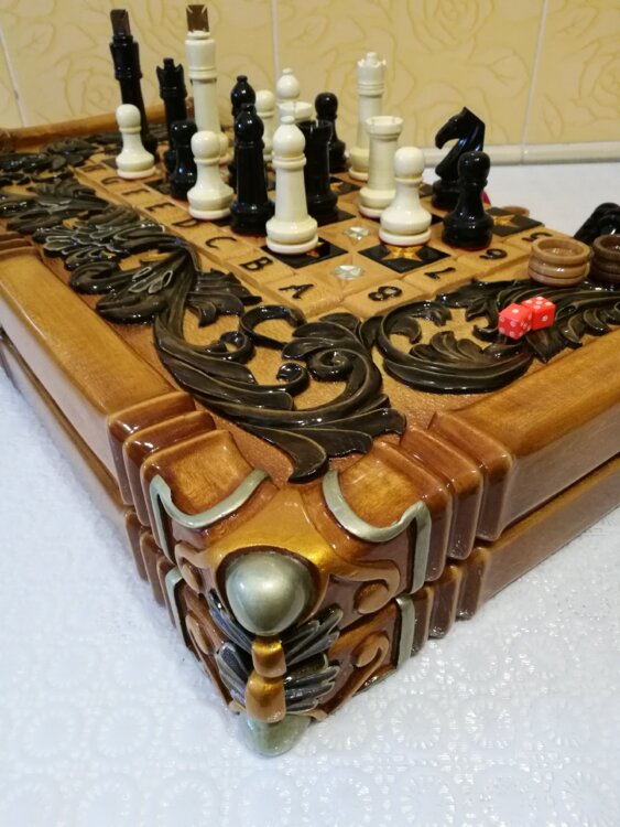 Нарды шахматы ручная резьба вырезанные со всех сторон и боков также и внутри нард на бортах есть резьба клетки поля вырезаны в форме звёзд цветные био лаки нарды облагорожены чеканкой по дереву размер нард 60 на 60см фигурки и фишки ясень дуб кубики кость. Поиграл и повесил на стенку украсит любой интерьер и создаст уютную обстановку а не будут пылиться в углу. Широкий выбор в наличии выбираете. Пишите звоните телеграм ватцап ваибер и мы вам поможем выбрать эксклюзивные нарды ручной резьбы а не дешёвую поделку вырезанные на станке выдающую за ручную резьбу!
