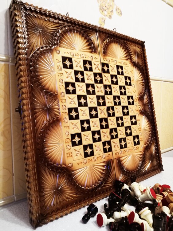 Нарды шахматы ореховые борта ручная резьба вырезанные техникой Геометрия со всех сторон и боков также и внутри нард на бортах есть резьба клетки поля вырезаны в форме звёзд нарды облагорожены чеканкой по дереву размер нард 60 на 60см фигурки и фишки ясень дуб кубики кость. Поиграл и повесил на стенку украсит любой интерьер и создаст уютную обстановку а не будут пылиться в углу Широкий выбор в наличии выбираете. Пишите звоните телеграм ватцап ваибер и мы вам поможем выбрать эксклюзивные нарды ручной резьбы а не дешёвую поделку вырезанные на станке выдающую за ручную резьбу!