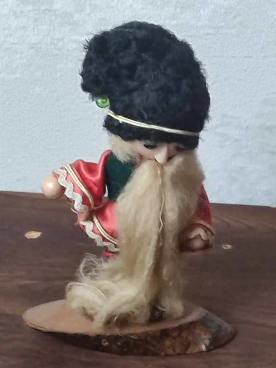 Кукла-Сувенир СССР Дедушка-Молдаванин, в национальном костюме, на деревянной подставке, фото