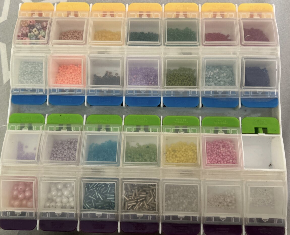 продам бисер 27 ячеек(1 сломана) и отдам леску