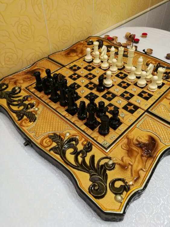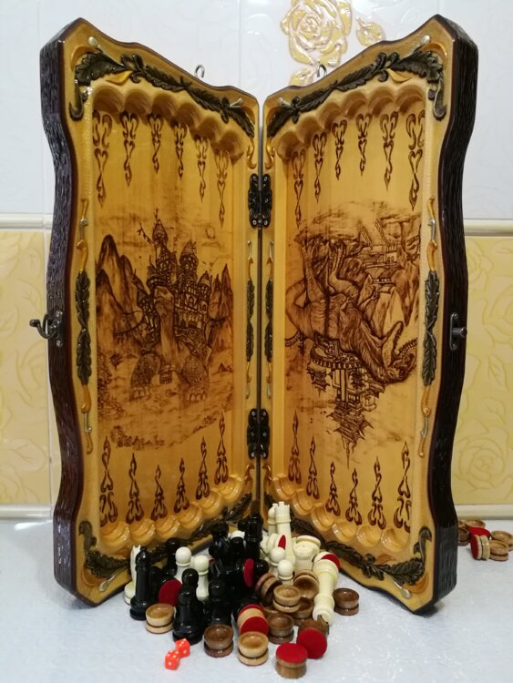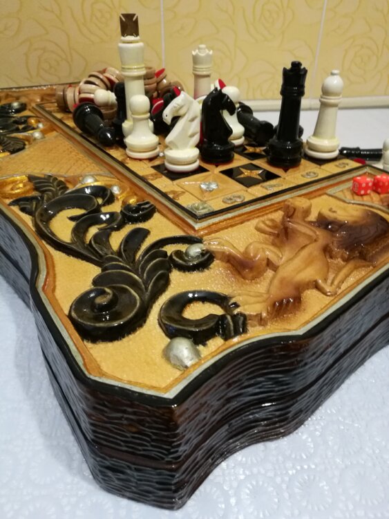 У нас цены от 5тыс лей выбирайте. Нарды шахматы ручная резьба вырезанные со всех сторон и боков также и внутри нард на бортах есть резьба клетки поля вырезаны в форме звёзд нарды облагорожены чеканкой по дереву цветные био лаки размер нард 60 на 60см фигурки и фишки ясень дуб кубики кость. Поиграл и повесил на стенку украсит любой интерьер и создаст уютную обстановку а не будут пылиться в углу. Широкий выбор в наличии выбирайте. Пишите звоните телеграм ватцап вайбер и мы вам поможем выбрать эксклюзивные нарды ручной резьбы!