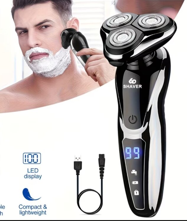 Новая Электробритва 3-Лезвийная Головка Перезаряжаемая через USB, Цифровой Дисплей, Нержавеющая