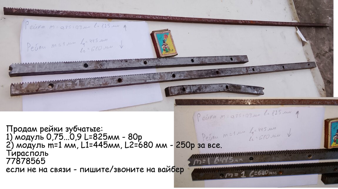 1) модуль 0,75...0,9 L= 825мм - 80р2) модуль m= 1 мм, L1=445мм, L2=680 мм - 250р за все.