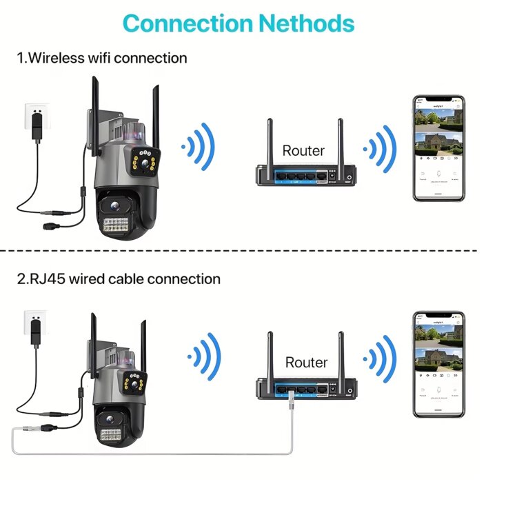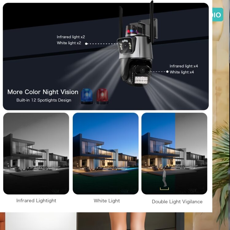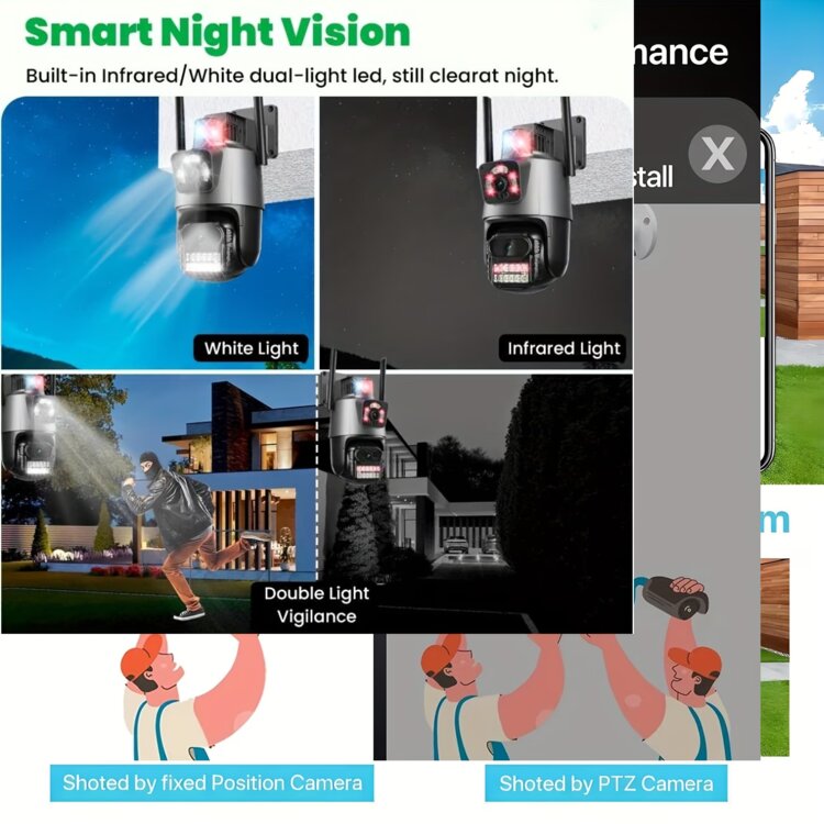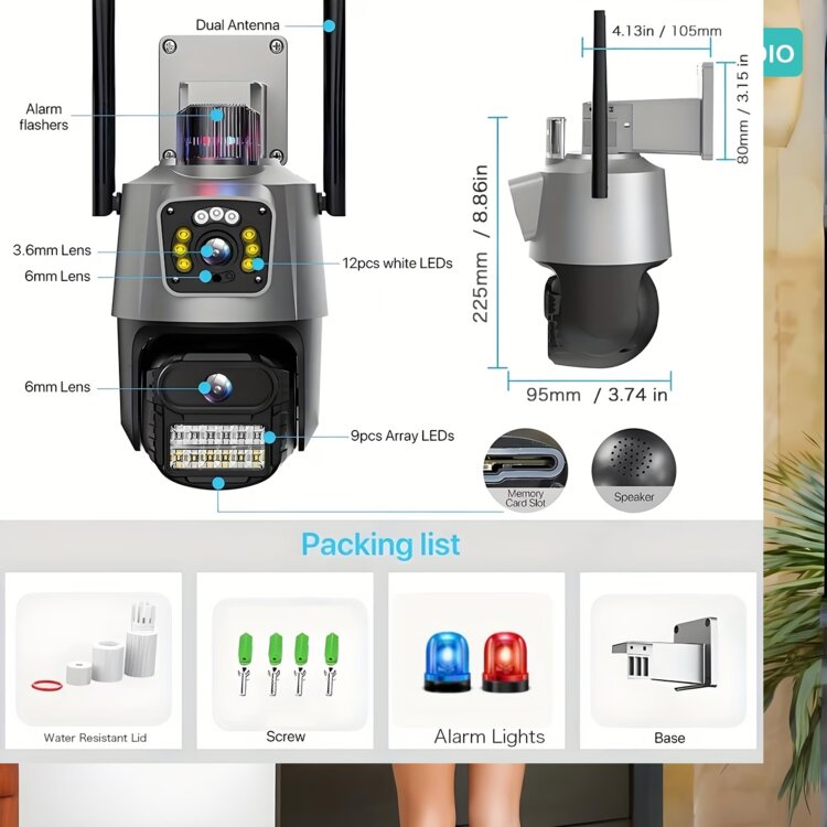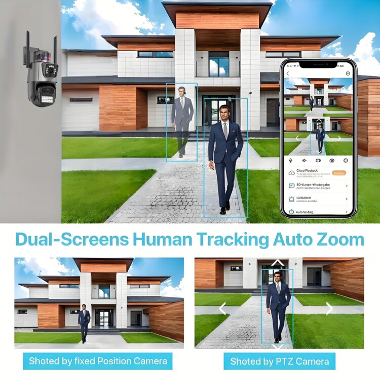 Уличная беспроводная Wi-Fi камера видеонаблюдения, Сопровождение 2 объекта 2 объективами| Elysianvue 2.4Ghz беспроводная камера с AI автоматическим отслеживанием, цветным ночным видением, двусторонним аудио, мобильным оповещением о движении, вращением на 360° Pan-Tilt-Pan, опциональной SD-картой, вилка EU