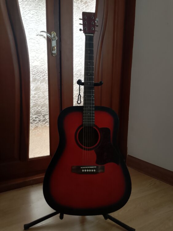 Хороший вариант для начинающих или для домашнего использования. Гитара в рабочем состоянии, звучит нормально, строй держит.