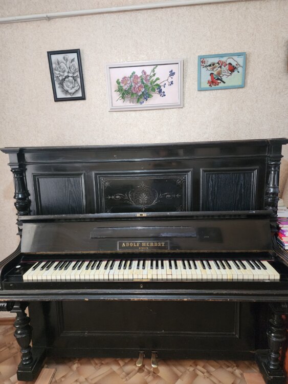 Продаю немецкое пианино Adolf Herbst Berlin(19век). Концертный звук, ручной регулятор громкости звука(модератор). Инструмент требует настройки. Цена-400y. e.