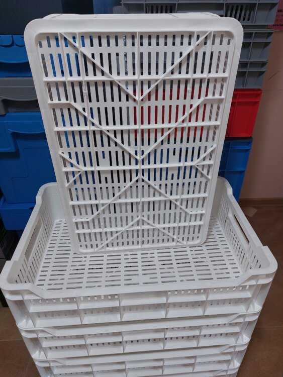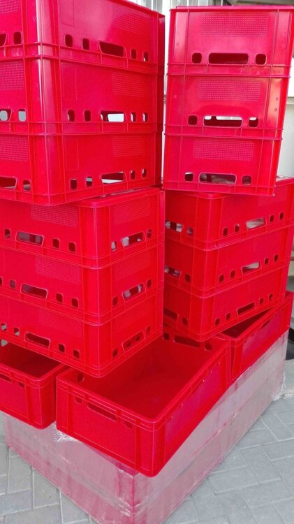 Ящики для фруктов. овощей, для мяса/рыбы, для хлеба, для хоз. товаров, также есть крупногабаритные пластиковые контейнеры.