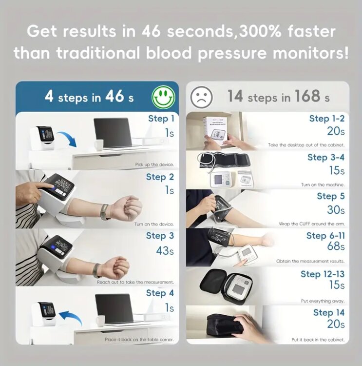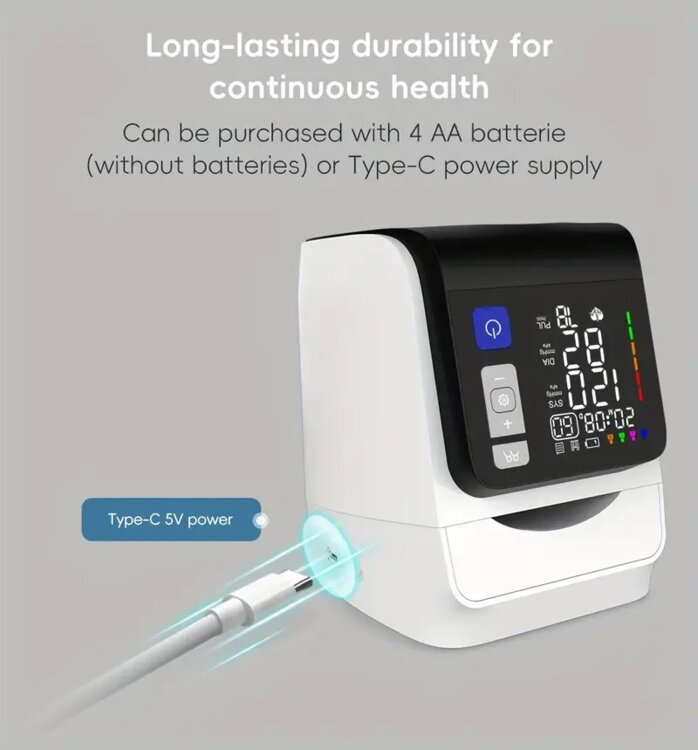 Монитор артериального давления Alphamed без манжет - быстрые результаты за 45 секунд, 5-дюймовый ЖК-экран, двойная измерительная функция, 4x199 память, питание от USB, батарея не требуется, идеально подходит для домашнего и медицинского использования, домашний мониторинг артериального давления| Современное медицинское устройство| Двойной источник питания