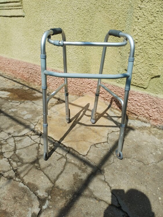 Алюминиевые легкие ходунки для взрослого, впереди на колесиках. Складываются.