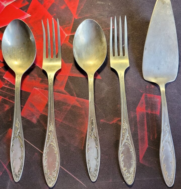 Мельхиоровые приборы- б/у - СССР-2 вилки+2 ложки+ лопатка для торта - 300 руб.