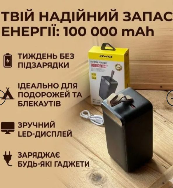 Повербанк Awei J86A 100000 мАг з LED-дисплеем. Очень мощный.