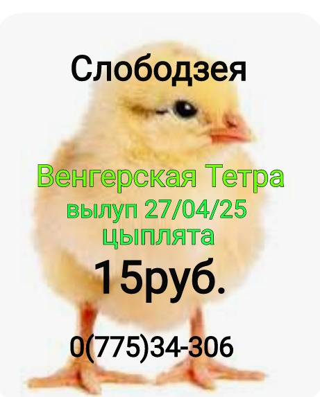 Продаются суточные цыплята, Венгерская Тетра. Вылуп 27/04/25г.