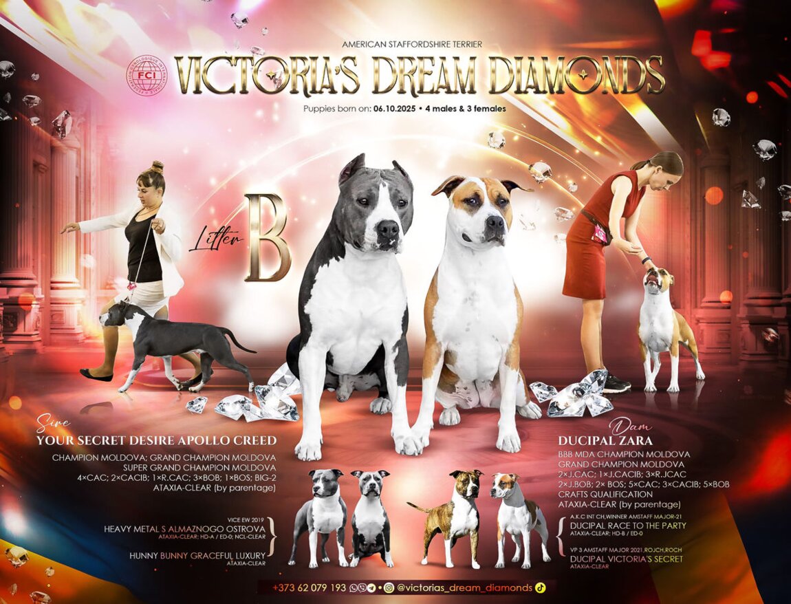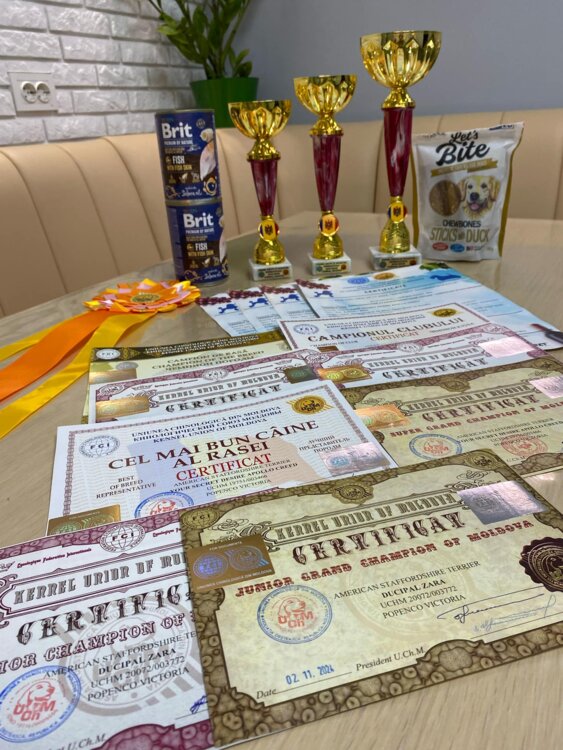 Лучшая представительница своей породы Американского Стаффордширского терьера женского пола Ducipal Zara - закрыла титул Чемпиона Молдовы, Гранд Чемпиона Молдовы