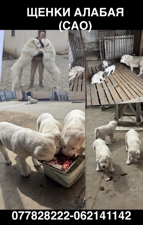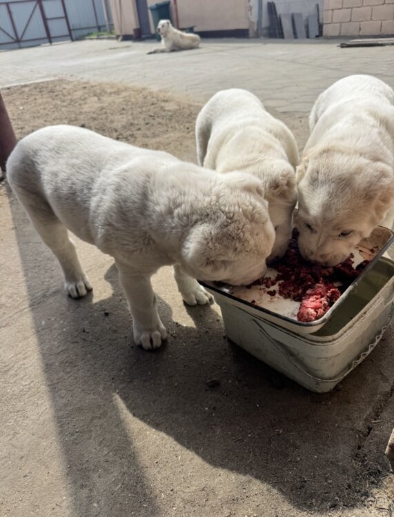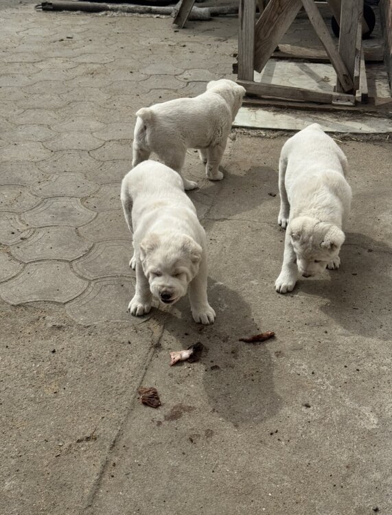 Продам щенков алабая белый окрас прививки документы сделаны в помете 3 щенка очень крупные Родители 80-90 кг с отличной родословной Все подробности по тел