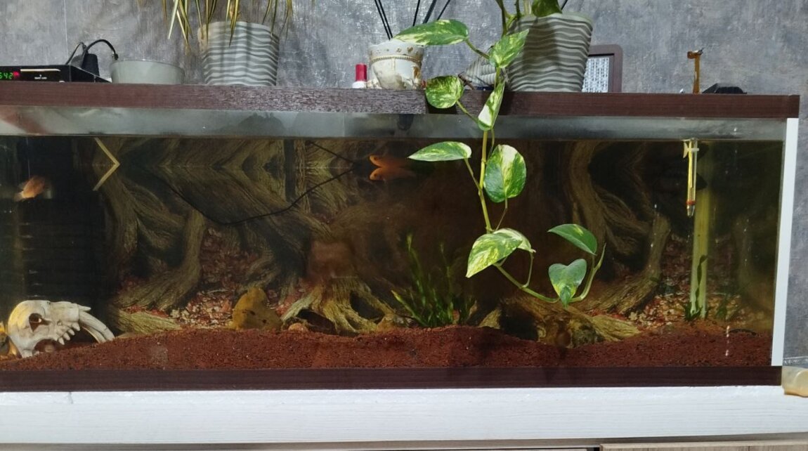 Продам аквариум 165 литров со всем оборудованием и рыбами. Размер аквариума: длина 110 см, высота 40 см, ширина 37.5 см. Грунт - красный кирпич. Рыбы: Сальвини, зебра красная, цихлазома бриллиантовая.