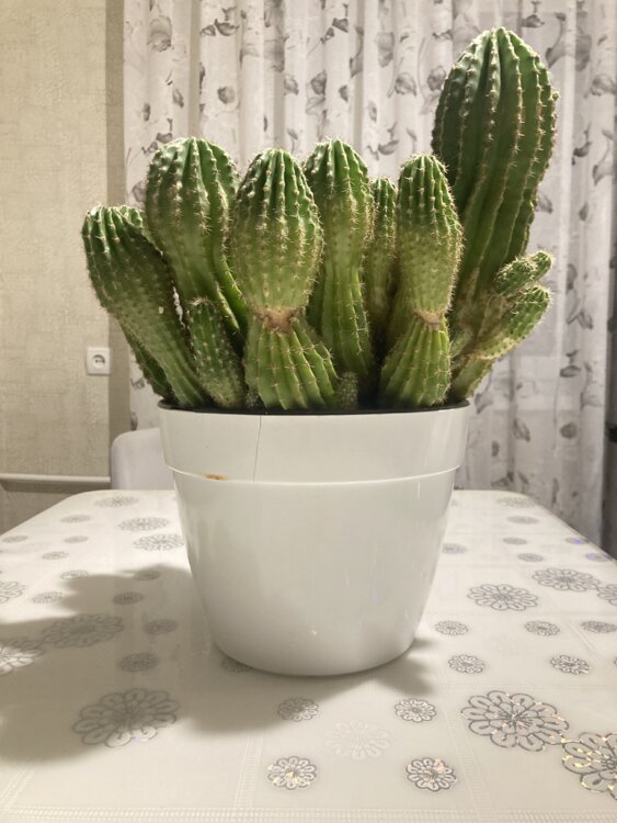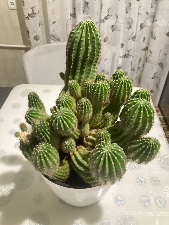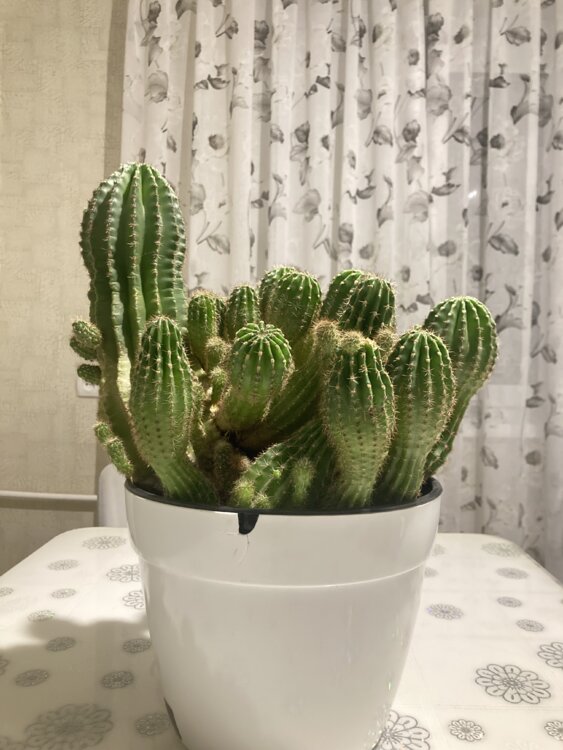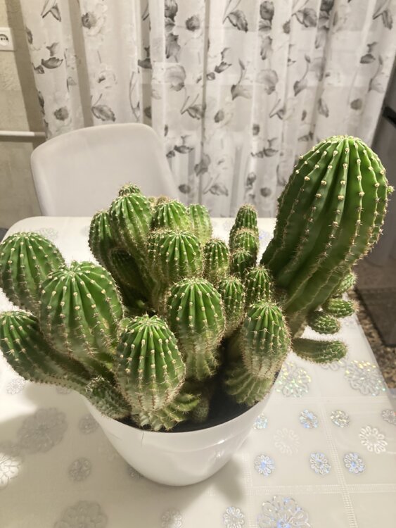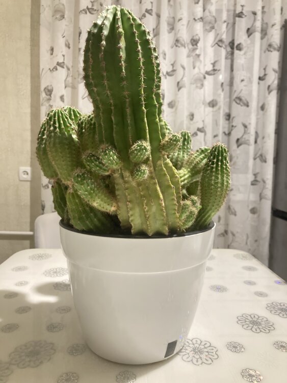 Густой красивый куст с множеством стеблей и отростков (деток), высота максимум 45 см (примерно 40–45 см). Растение очень сильное, быстрорастущее, никогда не болело, отлично себя чувствует в комнатных условиях. Идеально для коллекционера или как эффектное домашнее растение — может цвести большими белыми ароматными цветами ночью!