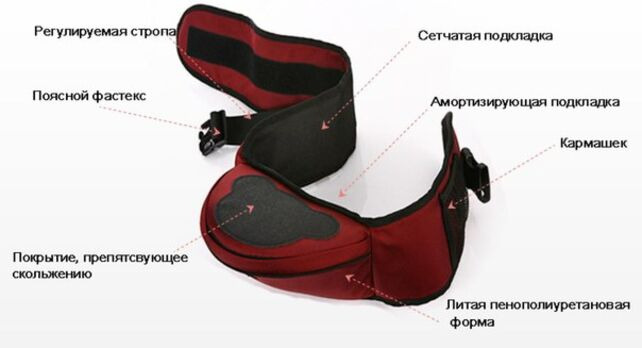 Ребёнок сидит комфортно, мама или папа держат его рукой, а нагрузка перераспределяется с рук на пояс.
