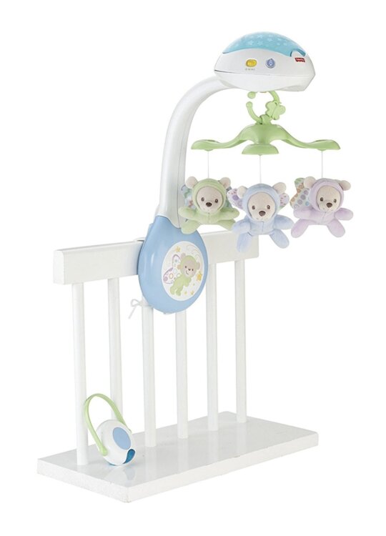 Продается детский мобиль на кроватку, мобиль-проектор от компании Fisher Price. Использовался недолго, качество отличное. Он надежно крепится на бортике кроватки при помощи удобного ремешка, включается и выключается тумблером. Мобиль оснащен звуковыми эффектами, есть 3 режима звука - воды, леса и приятные мелодии. Громкость регулируется. В процессе звучания музыки срабатывают и световые эффекты - переменно загораются три лампочки на проекторе. Ну и самое главное - медленно кружащиеся 3 плюшевые медвежонка, за которыми с удовольствием и любопытством будет наблюдать ваш малыш. Для удобства предусмотрен пульт дистанционного управления, с помощью которого вы сможете включать музыку и переключать мелодии.