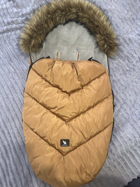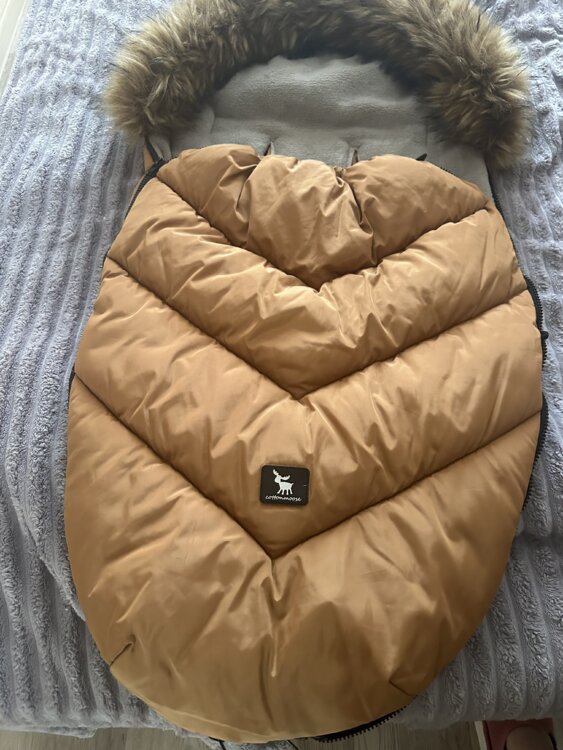 Cottonmoose очень теплый, защищает от дождя и снега; мех съемный. Подходит для детей с рождения примерно до 3 лет (можно сложить, чтобы подогнать размер под маленьких детей)