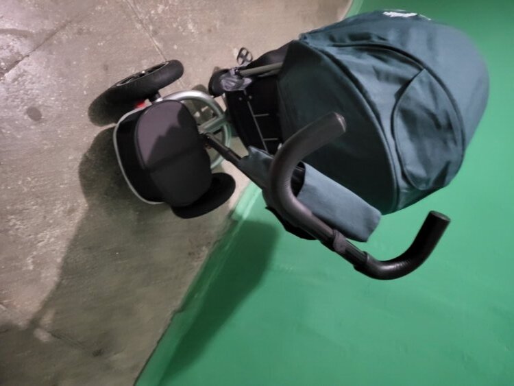 Родительская ручка - съемная; два положения по высоте; в верхней части установлена сумочка для мелочей.