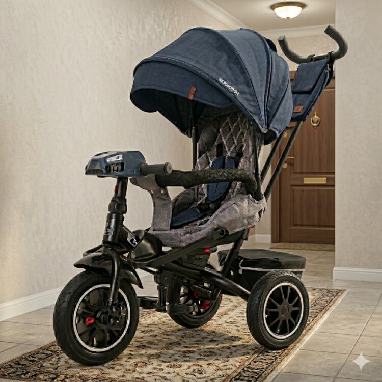 - Для безопасности ребенка, велосипед оборудован съемных страховочным бампером раздвижным бампером и 3-хточечным ремнем безопасности.